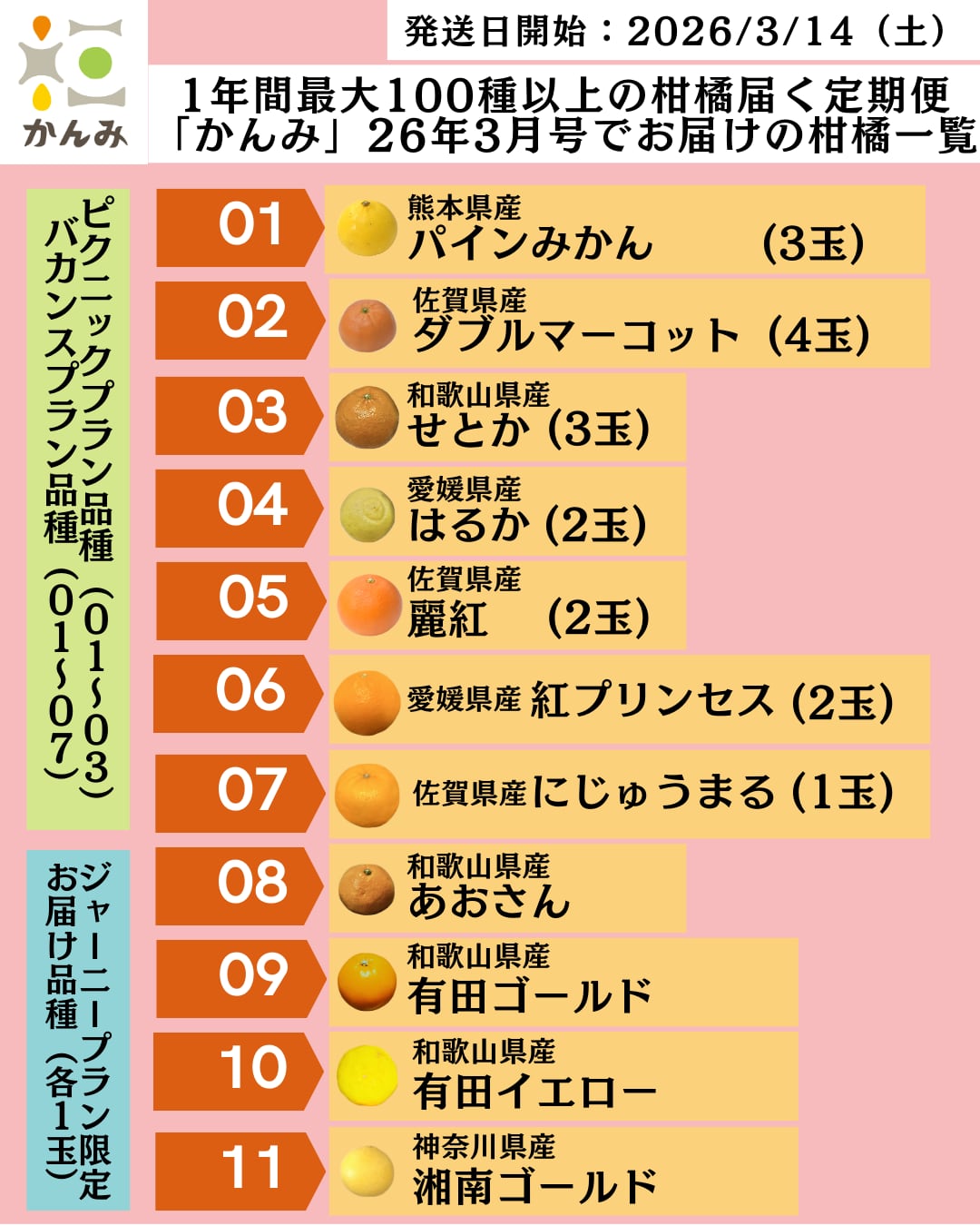 かんみのフラグシッププランです。お届け予定カレンダーにある84品種に加え限定品種を16種類以上お届けする、1年間で100品種以上の食べくらべを保証します。
